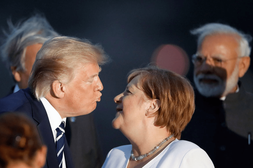 [Trump and Angela Merkl in smooch mode; Modi looks on]
