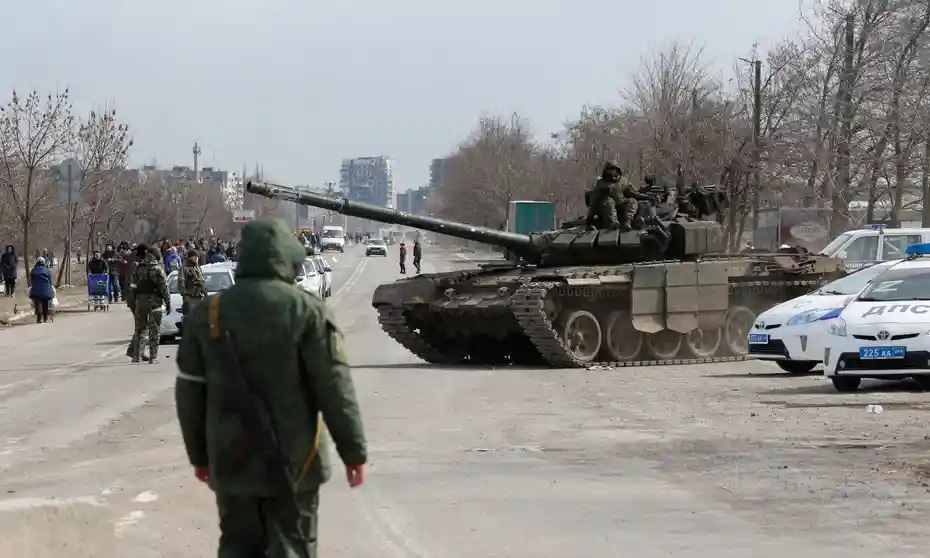 [Russian tank on a Mariuopol street — Day 26 of invasion]